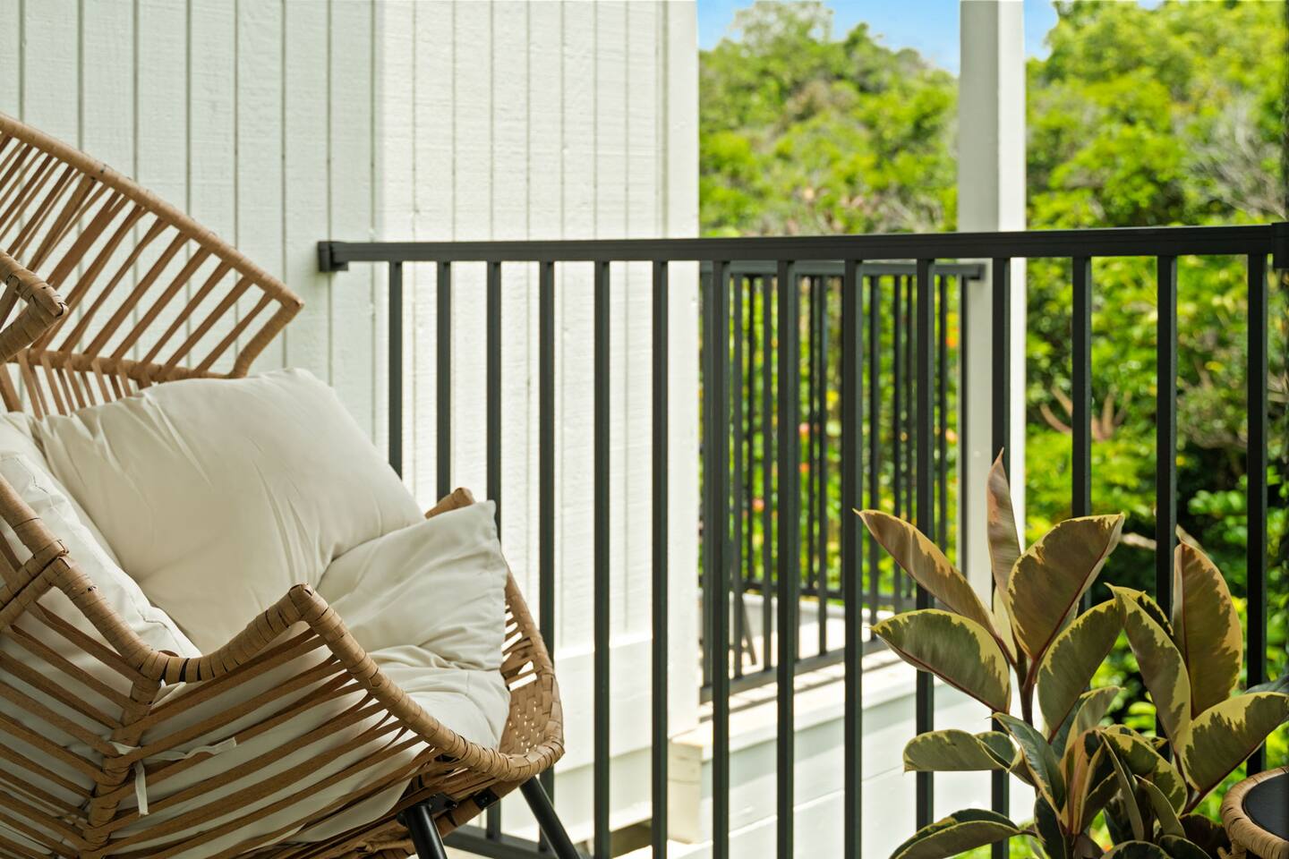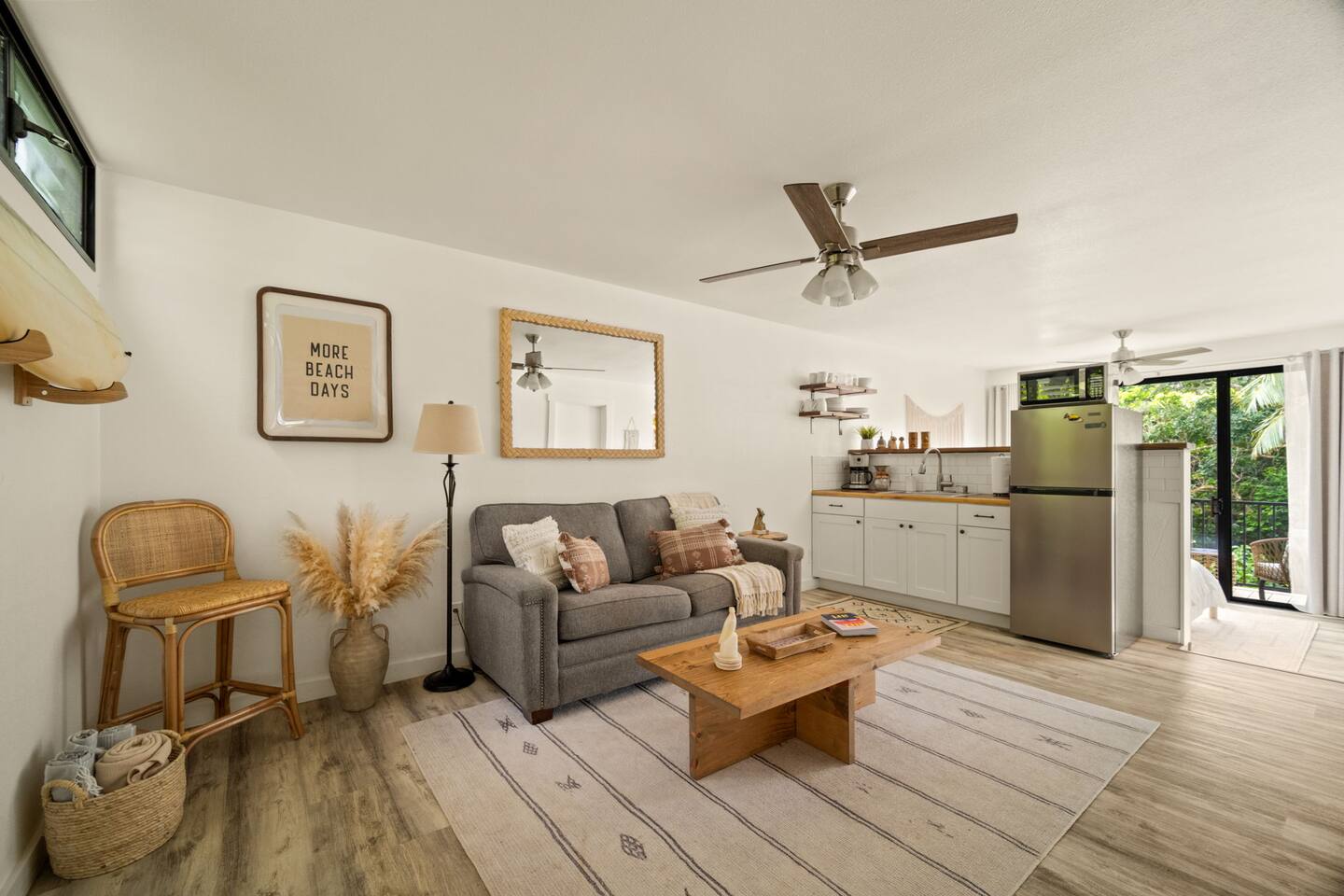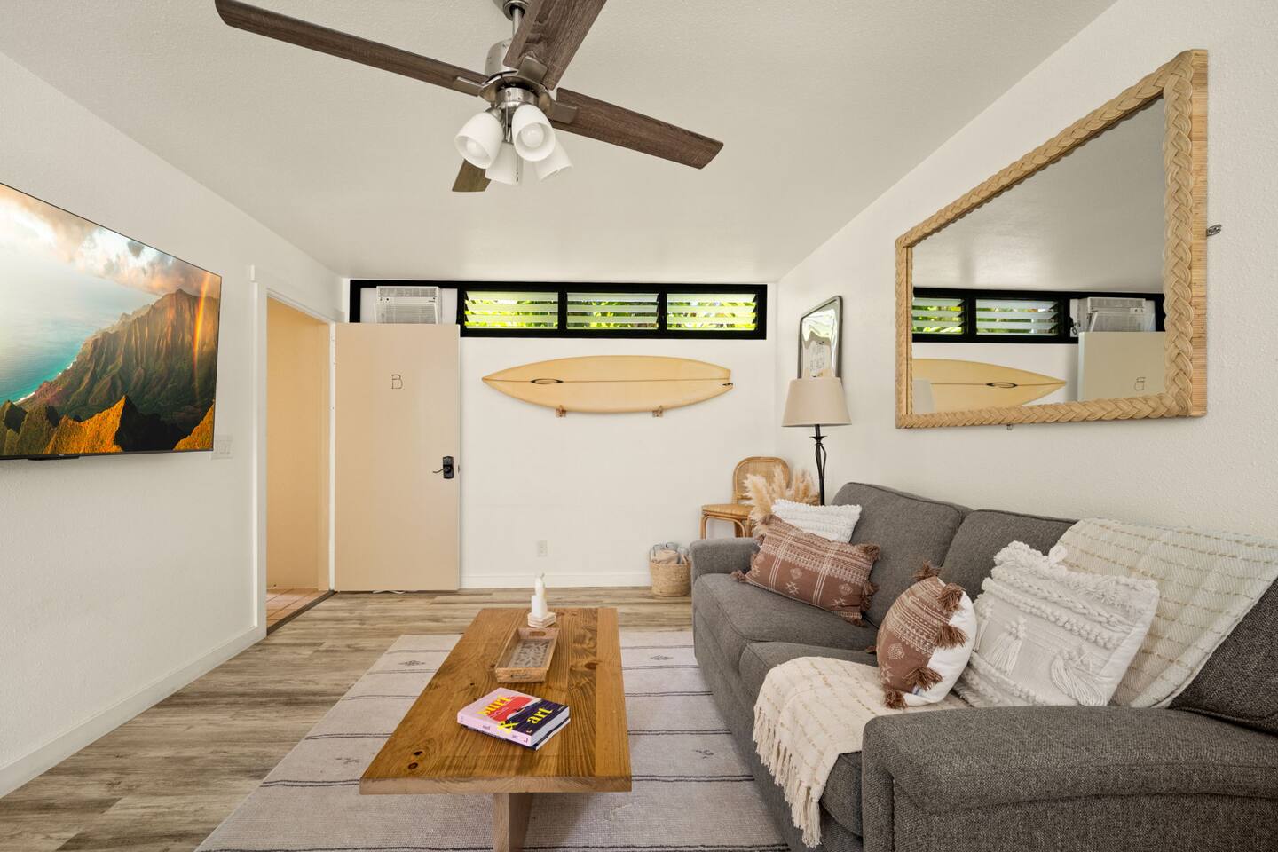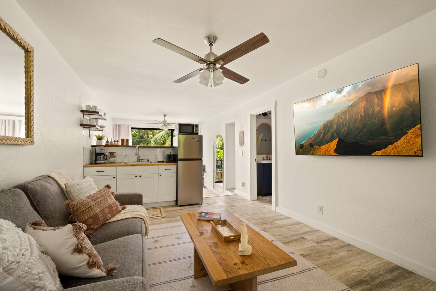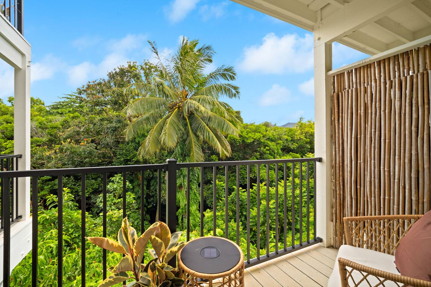 You won't find a better location for the price, and we truly believe there no place more special to stay on the island. We’ve updated the decor with a warm, earthy aesthetic full of soulful touches, and will continue to enhance the space so each stay feels even more special. Perfect for honeymooners, solo escapes, or a cozy couples’ getaway, this light-filled studio features a king-size bed, a sofa bed, a kitchenette, and a private lanai with serene jungle views. While there’s no ocean view, the peaceful rainforest setting, walkability to Kaua‘i’s most iconic beaches and trails, and the approachable price make it a true hidden gem. Just a 5-minute stroll from both Hideaways Beach and Pali Ke Kua Beach, Casa Coco is perfectly located for both adventure and deep relaxation. You’ll also have free parking and all the essentials for a comfortable and restorative stay. And when evening rolls around, you can simply cross the street to enjoy one of the most iconic sunset spots on the island—overlooking Bali Hai and the sparkling Pacific. Whether you’re sipping coffee surrounded by tropical greenery or winding down after a day of snorkeling and exploration, Casa Coco is an effortlessly beautiful place to unplug, reconnect, and experience the magic of the North Shore.