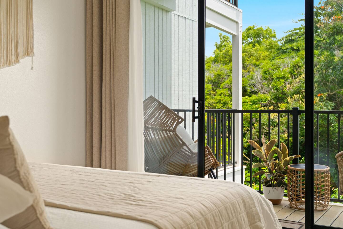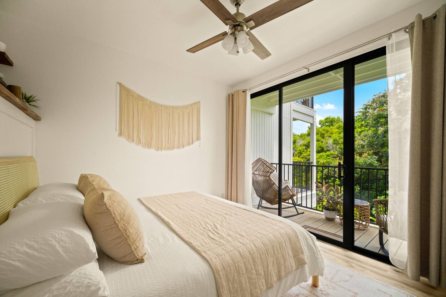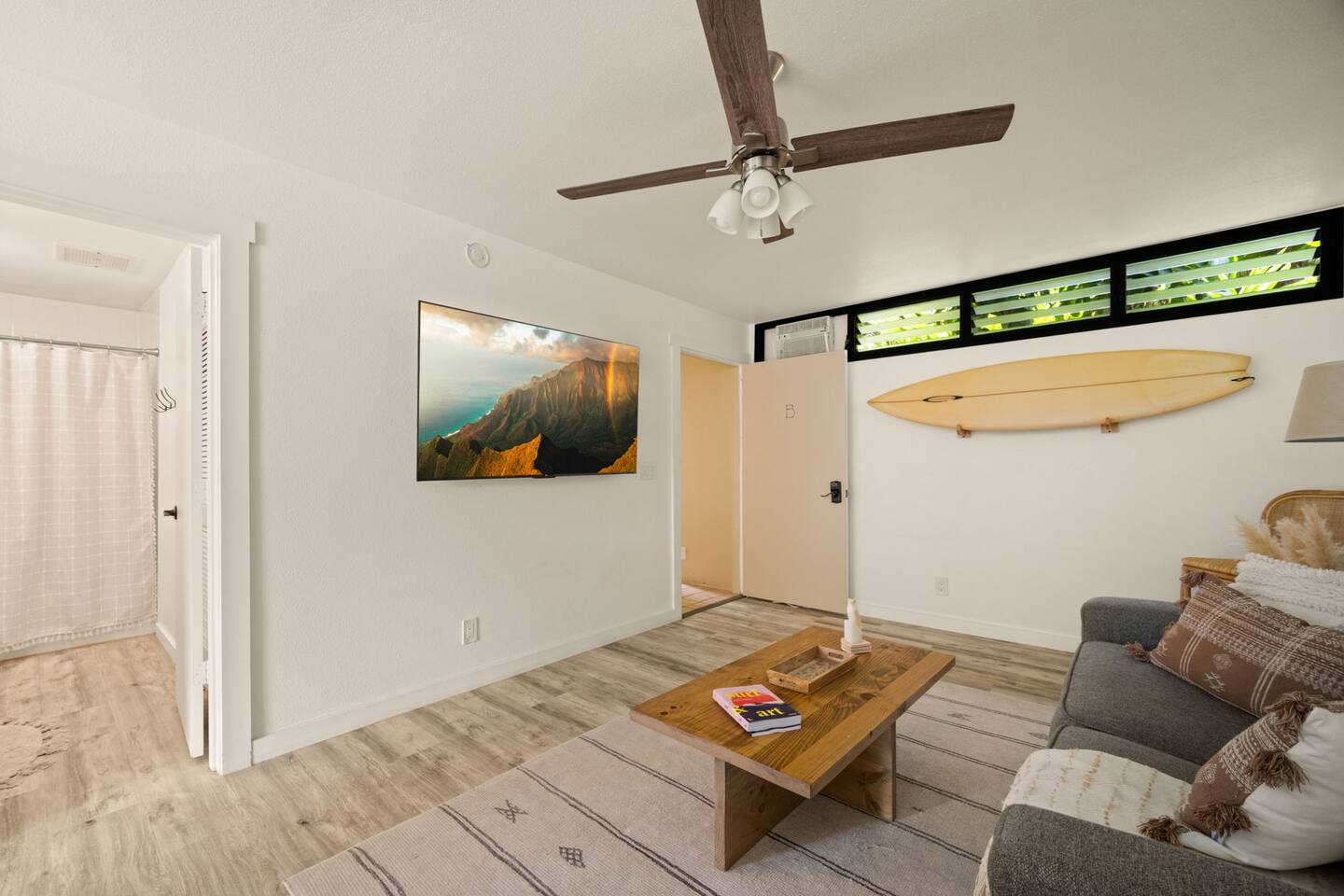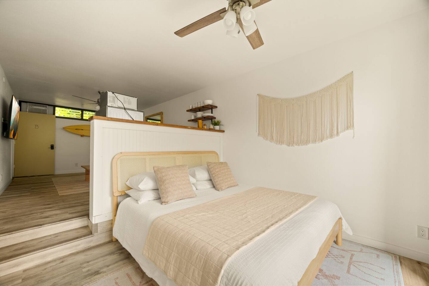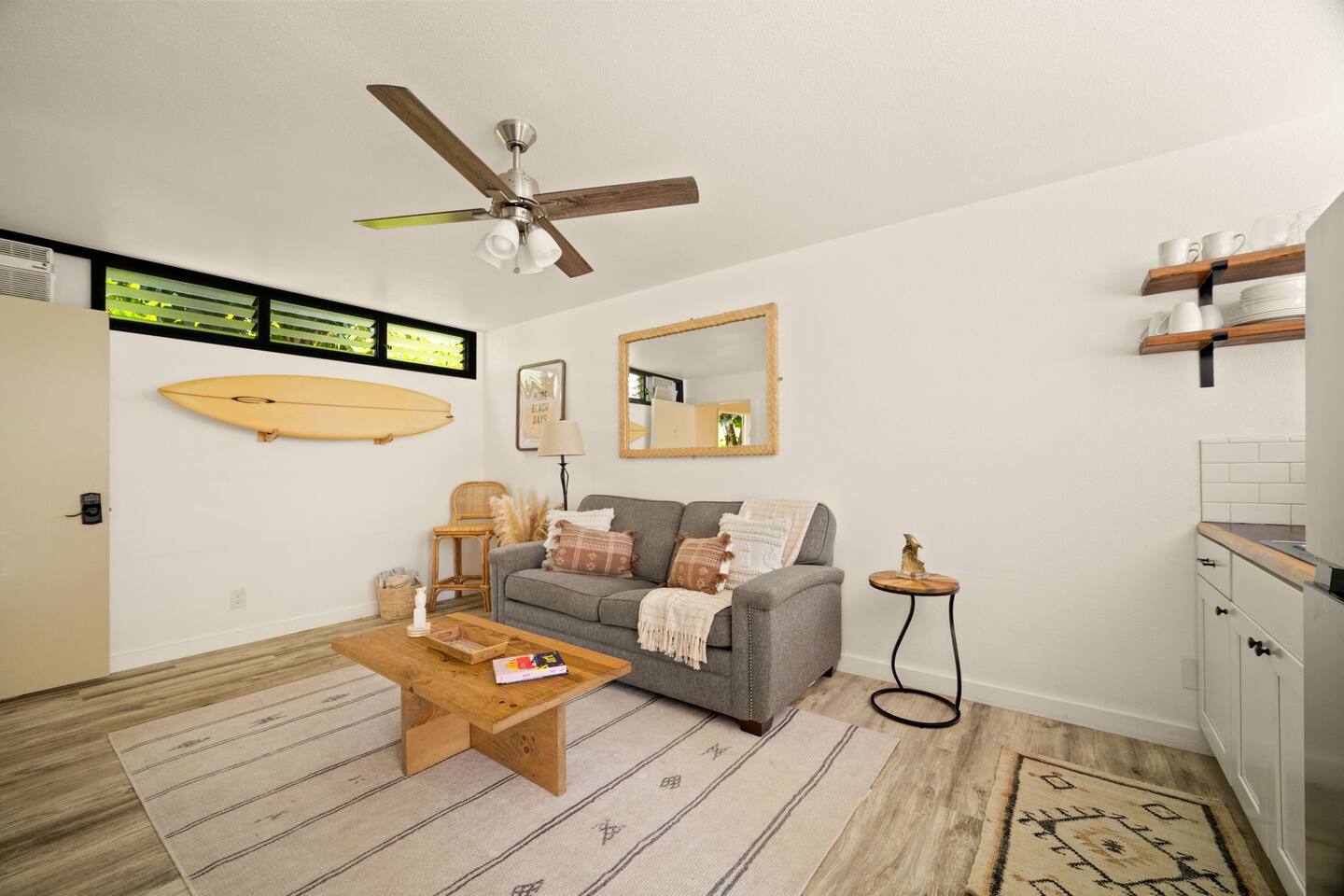 You won't find a better location for the price, and we truly believe there no place more special to stay on the island. We’ve updated the decor with a warm, earthy aesthetic full of soulful touches, and will continue to enhance the space so each stay feels even more special. Perfect for honeymooners, solo escapes, or a cozy couples’ getaway, this light-filled studio features a king-size bed, a sofa bed, a kitchenette, and a private lanai with serene jungle views. While there’s no ocean view, the peaceful rainforest setting, walkability to Kaua‘i’s most iconic beaches and trails, and the approachable price make it a true hidden gem. Just a 5-minute stroll from both Hideaways Beach and Pali Ke Kua Beach, Casa Coco is perfectly located for both adventure and deep relaxation. You’ll also have free parking and all the essentials for a comfortable and restorative stay. And when evening rolls around, you can simply cross the street to enjoy one of the most iconic sunset spots on the island—overlooking Bali Hai and the sparkling Pacific. Whether you’re sipping coffee surrounded by tropical greenery or winding down after a day of snorkeling and exploration, Casa Coco is an effortlessly beautiful place to unplug, reconnect, and experience the magic of the North Shore.